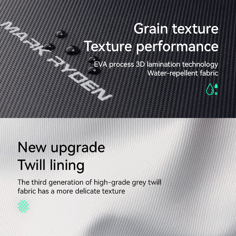 The Ratio Arc Apex - MR7778 by MARK RYDEN is crafted from EVA and waterproof Oxford fabric, it features a laptop compartment for devices up to 15.6 inches and a dedicated iPad sleeve. With YKK zippers, adjustable shoulder straps (40-90cm), a USB charging port, and an internal keychain, it ensures convenience and security. The 180¡ã opening adds easy access for organized packing.